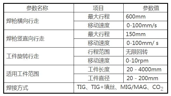 工件裝卡采用專用中心定位裝置定位,尾座氣動(dòng)頂緊方式;工件回轉(zhuǎn)采用步進(jìn)電機(jī)調(diào)速、恒轉(zhuǎn)矩輸出,速度平穩(wěn);機(jī)頭橫向和縱向移動(dòng)采用氣缸驅(qū)動(dòng),導(dǎo)軌導(dǎo)向,具有運(yùn)動(dòng)平穩(wěn)、響應(yīng)速度快;尾座沿縱向可調(diào),可適應(yīng)多品種焊接。焊接實(shí)施等功能均由控制盒的按鈕實(shí)現(xiàn),操作簡單,便捷,操作采用人機(jī)界面可進(jìn)行參數(shù)的更改,參數(shù)的修改可通過觸摸式按鍵,方便及時(shí)的輸入;該山東焊接專機(jī)以松下可編程序控制器為核心組成自動(dòng)焊接控制系統(tǒng),自動(dòng)化程度高,提高工作效率,減少焊接變形。