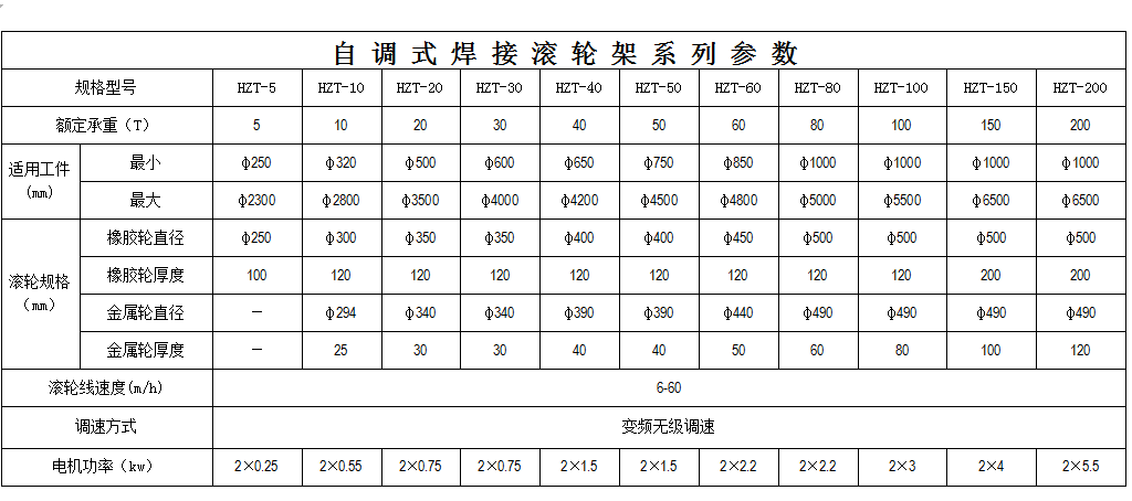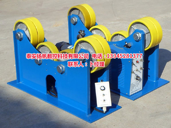 焊接滾輪架,是利用主動(dòng)滾輪與焊件之間的摩擦力帶動(dòng)工件旋轉(zhuǎn)的變位設(shè)備。滾輪架可根據(jù)工件直徑大小自動(dòng)調(diào)節(jié)輪組的擺角,并能自動(dòng)調(diào)心。滾輪架主要用于管道、容器、鍋爐、油罐等圓筒形工件的裝配或焊接,滾輪架當(dāng)與焊接山東操作機(jī)、焊接電源配套時(shí),可以實(shí)現(xiàn)工件的內(nèi)外縱縫和內(nèi)外環(huán)縫焊接。滾輪架充分吸取了國內(nèi)外同類產(chǎn)品的優(yōu)點(diǎn),具有工藝、質(zhì)量可靠、操作簡單、傳動(dòng)噪聲低、工件回轉(zhuǎn)平穩(wěn)等優(yōu)點(diǎn)。滾輪架是實(shí)現(xiàn)壓力容器及筒狀工件焊接自動(dòng)化、半自動(dòng)化的必備設(shè)備。自調(diào)式滾輪架滾輪驅(qū)動(dòng)采用變頻調(diào)速電動(dòng)機(jī),可按焊接規(guī)范進(jìn)行無極調(diào)速,具有焊接速度調(diào)速范圍寬、轉(zhuǎn)動(dòng)平滑性好、低速特性硬等特點(diǎn)。當(dāng)對主、從滾輪架的高度作適當(dāng)?shù)恼{(diào)整后,也可進(jìn)行錐體、分段不等徑回轉(zhuǎn)體的裝配與焊接。對于一些非圓長形焊件,若將其卡在特制的環(huán)形卡箍內(nèi),也可在焊接滾輪架上進(jìn)行裝焊作業(yè)。特別是自調(diào)式、可調(diào)式焊接滾輪架系列
